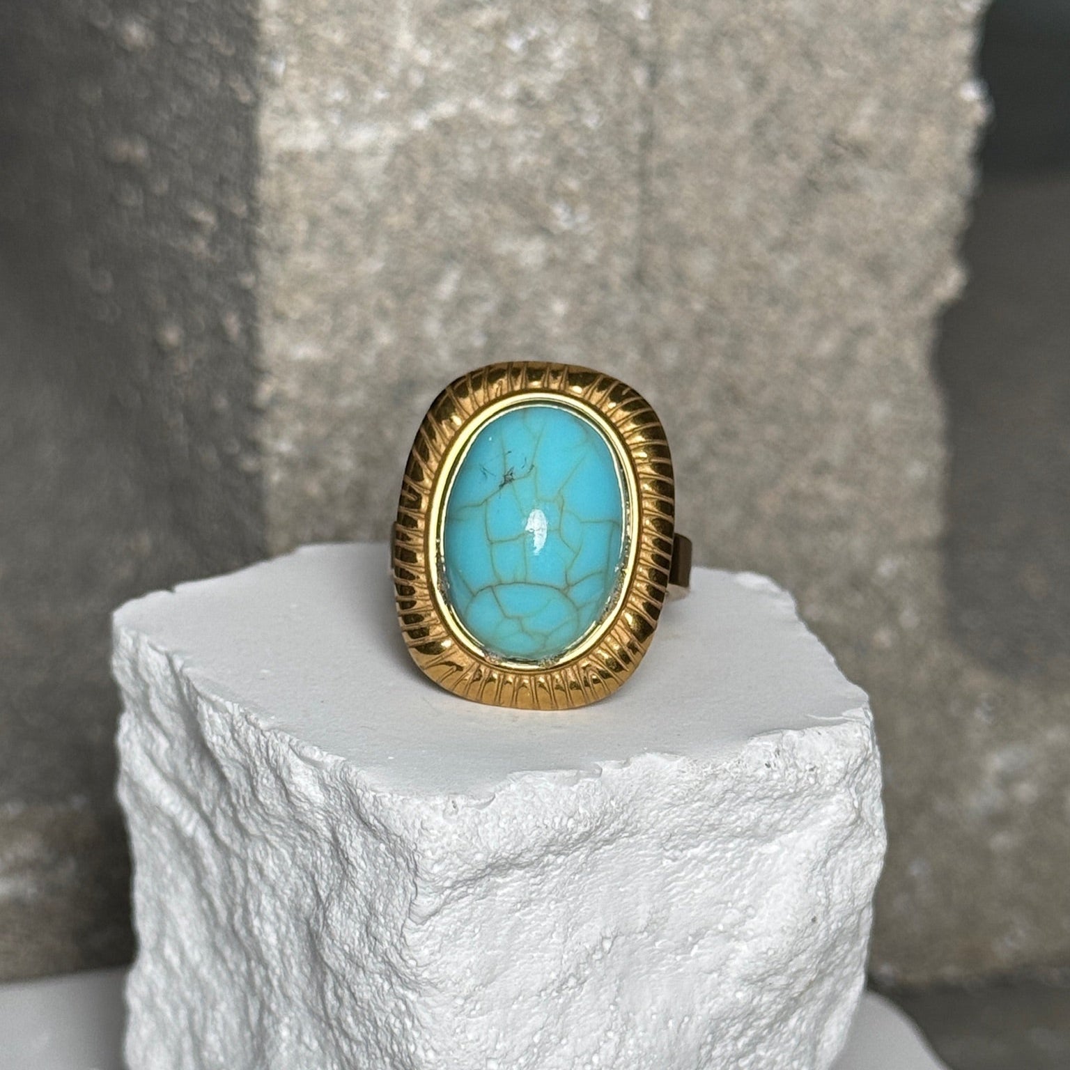 Golden Turquoise Statement Ring Size 10