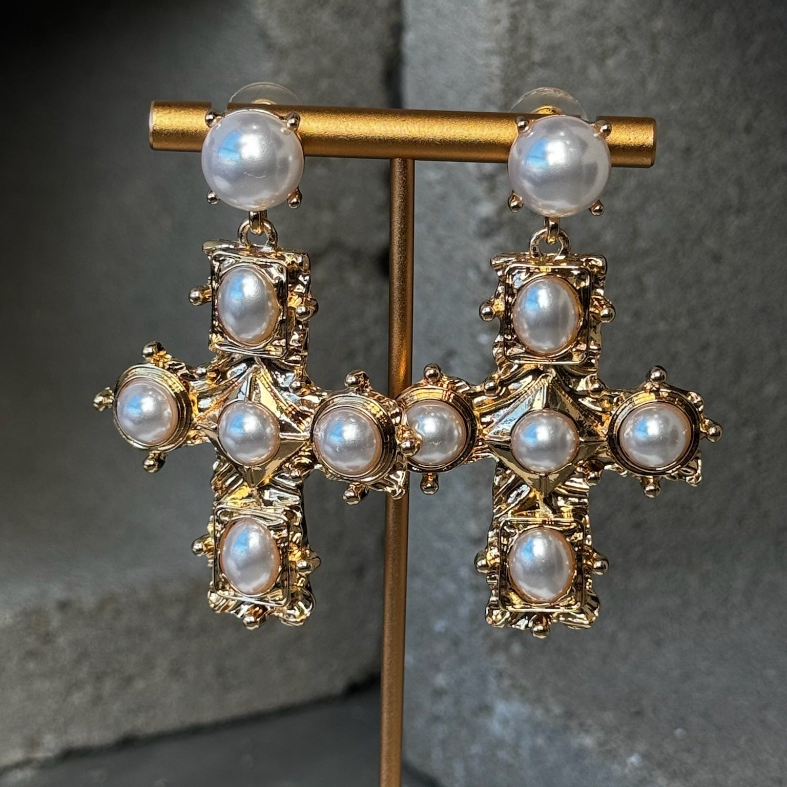 So Graceful Pearl Cross Earrings