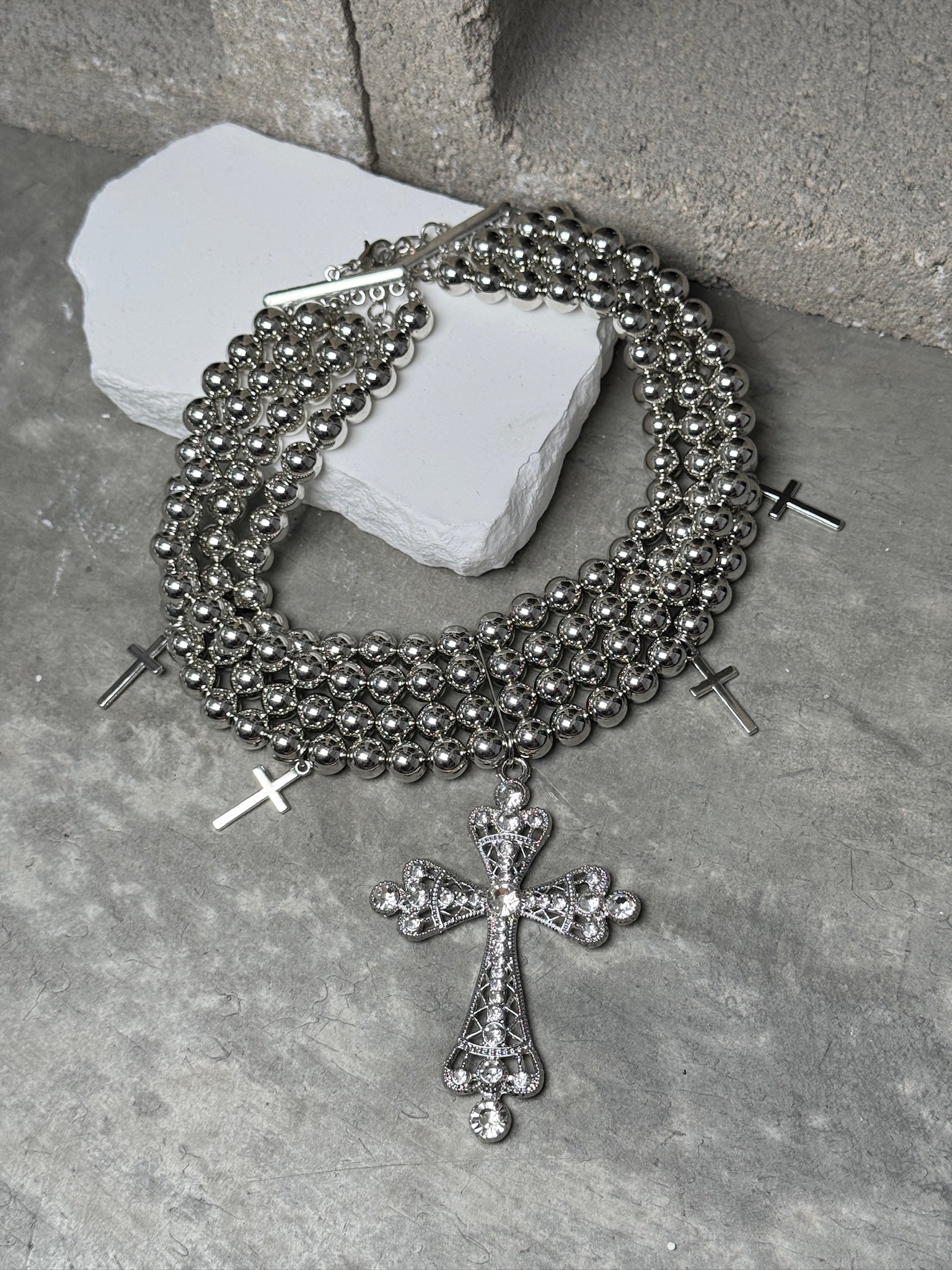 Triple Blessing Beaded Cross Necklace 14" w/ Extender